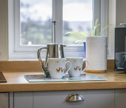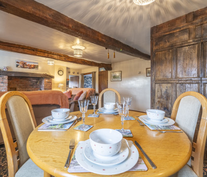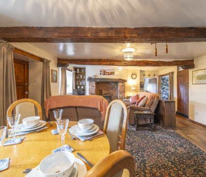 Enter into the spacious lounge with a classic Inglenook fireplace, original 17th century beams and far-reaching views over the countryside spread out before you. Settle down on the comfortable sofas and enjoy the peace and quiet - and when it's time to dine, there is a good-size dining table to gather around. Just off the lounge is the well-laid-out kitchen which has been recently re-fitted with modern fittings and appliances and also boasts great views for the chef.