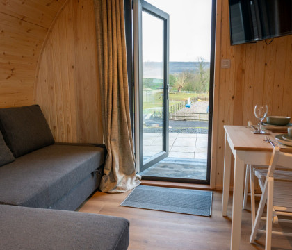Perched on the hillside of a working farm, Herdsman Hut is a new and modern Glamping Pod complete with underfloor heating, mains electricity and plumbed-in facilities, plus stunning views overlooking Underbarrow and further to Scout Scar.