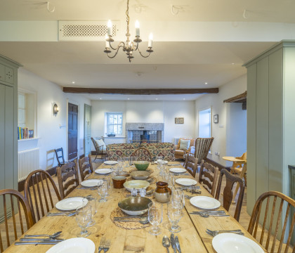 The ground floor is exceptionally spacious with two lounge areas, a snug, kitchen/dining area, boot and utility room (ideal retreat for dogs), and handy WC. Three logburners provide a wonderfully inviting and cosy feel (starter supplies of wood provided) and the beautiful decor makes you feel you have come to somewhere pretty special. Any combination of family or all adult groups can easily find space to be together sociably, or break-off in to two or three groups and have their own space to enjoy. Pause awhile to enjoy the view over the garden from the window seat halfway up the stairs before reaching the first of the five bedrooms and three bathroom facilities - the high quality continues in each of the elegant bedrooms - three are king size, and there is a dual-aspect twin room, and one single room with a small double (4ft) bed. There is a lovely family bathroom with clawfoot bath and separate shower, and there are two further shower rooms on this level.