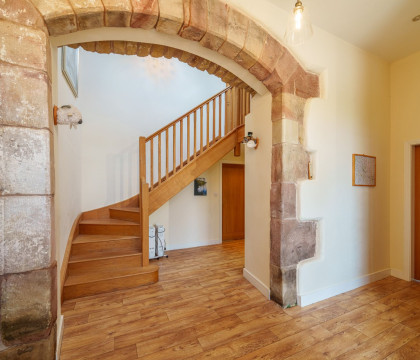Originally a Westmorland stone barn, the building has been sympathetically converted while still gaining many of the original features, including original wood beams and exposed stone walls, and now spans two floors, the ground floor comparing the grand double-height entrance hallway that leads off to the open plan kitchen, which is very well equipped, the living and dining area, a spectacular space for all the family to enjoy whether relaxing on the comfy sofas or sitting around the dining table for a meal. On warmer days, open the patio doors, expanding the space to the patio, complete with outdoor garden furniture. However, the large wood-burning fire will keep you all toasty warm even on chilly days.