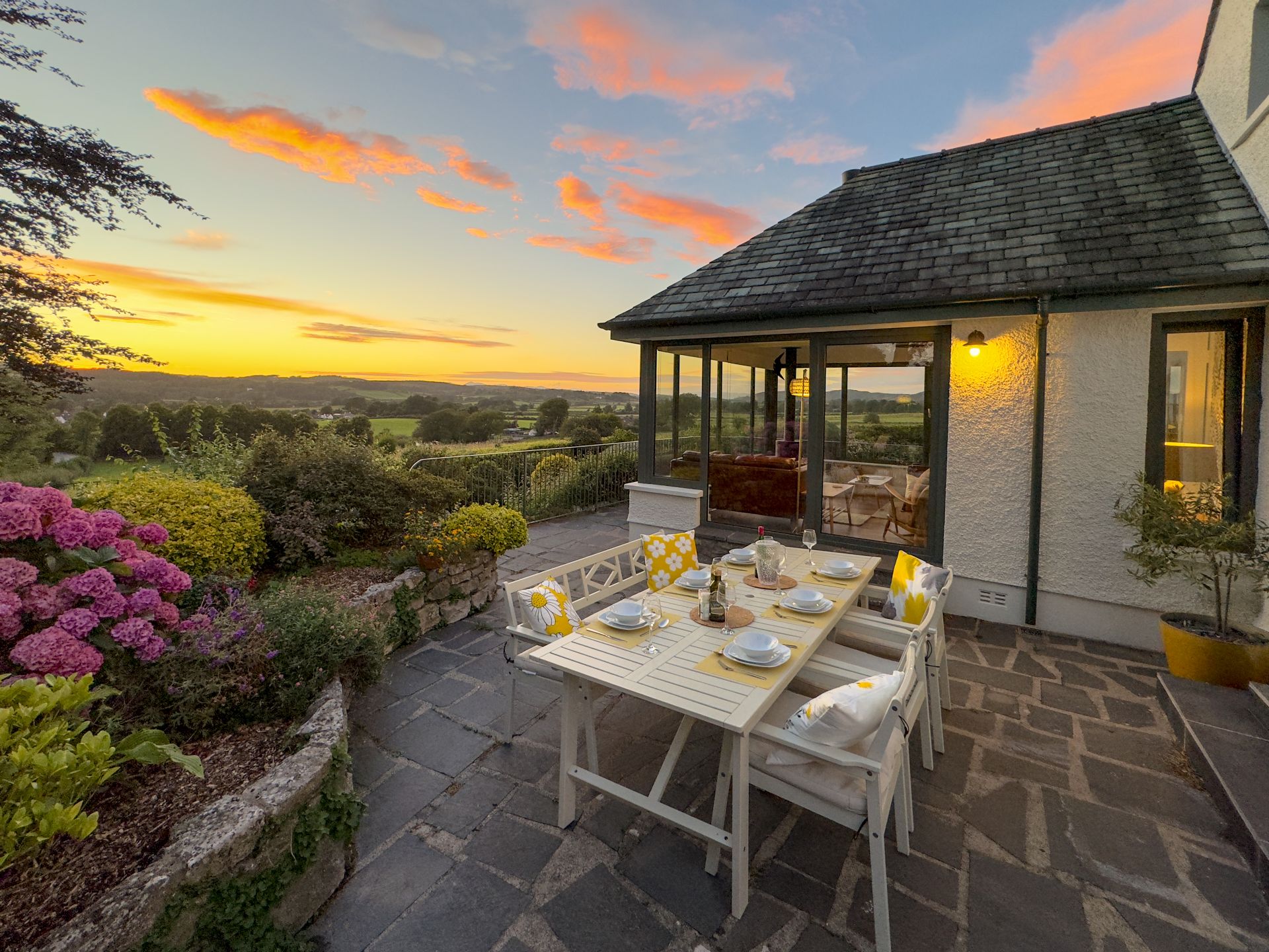 Imagine relaxing in a spacious garden room with a Morso wood-burning stove and large windows, admiring the breathtaking 270-degree views across the Cartmel Valley to the Coniston, Fairfield, Helvellyn, and Cartmel Fells. Nothing but the sounds of birdsong from the surrounding mature gardens and the church bells sounding on a Sunday morning—it is truly wonderful!