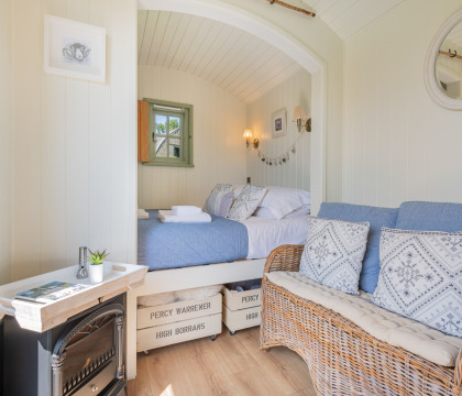 Escape to a truly enchanting retreat in the heart of Cumbria with Percy, the meticulously handcrafted Shepherd's Hut. Nestled within its own secluded cherry orchard, Percy offers a unique blend of rustic charm and modern luxury. Designed and manufactured by Cumbrian Shepherds Huts, every detail has been designed to provide an unforgettable glamping experience, perfect for those seeking tranquillity and a touch of quirky comfort.