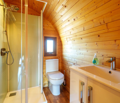 The shower room is spacious. There's no bath; instead, a large shower cubicle with a main-plumbed rain shower head, basin and toilet, plus fluffy towels are provided for guests.