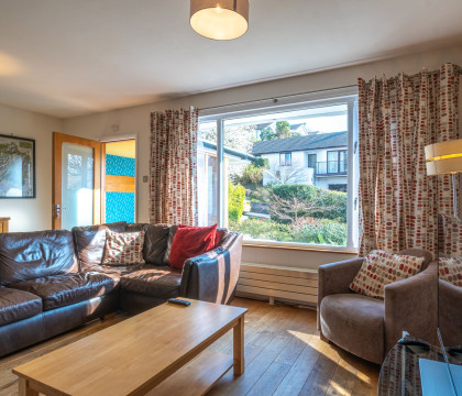 This Ambleside holiday property benefits from a secure heated garage, ideal for storing bicycles or walking gear. To the front is established shrubbery and a driveway providing off-street parking for up to two cars. Glass entrance porch. The rear garden, surrounded by established shrubbery and trees, includes a paved patio area with outside seating.