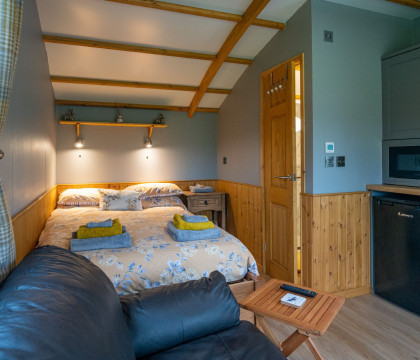 These Kirkby Stephen glamping pods have been designed to a high spec comprising underfloor heating, a fully equipped kitchen, an open plan sleeping/sitting area and a mains-plumbed bathroom with a full-sized shower, loo and basin.