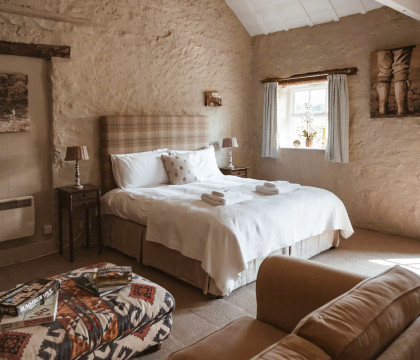 Designed exclusively for couples, the open-plan living space is the heart of the cottage. It's a place to unwind, relax on the comfortable sofa with a good book, and reconnect. The modern, fully-equipped kitchen has everything you need to prepare a romantic dinner, which can be enjoyed at the intimate dining table before settling in for a film—all supported by superfast gigabit broadband.