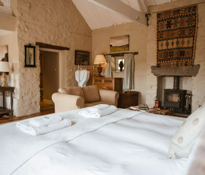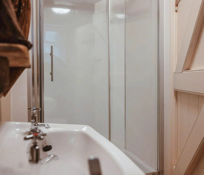 For larger groups or family gatherings, The Dog House offers wonderful flexibility. It can be booked in conjunction with the adjacent Bluebell Cottage, which accommodates a further four guests, allowing for a combined party of six to enjoy the estate together.