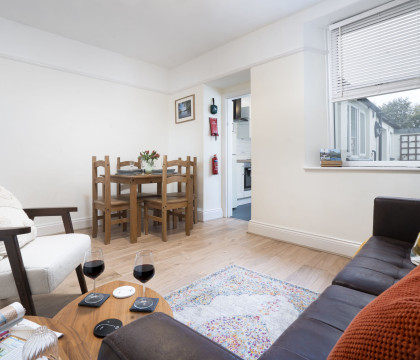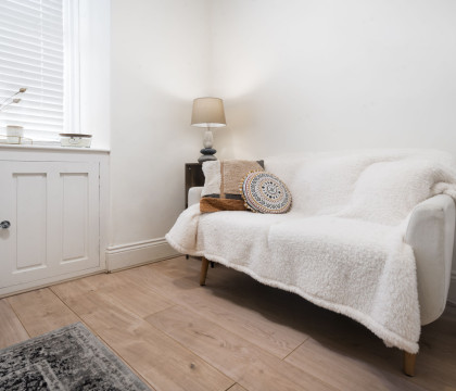 Step in from the front door and take your pick of two areas in which to relax. There is a small lounge with a Smart TV at the front of the house, and further back is the large open-plan area. The open-plan zone features a large sofa, an easy chair, and a coffee table, as well as a dining table that can be moved, if required, to accommodate four diners in comfort. Next is the kitchen, which looks the business, featuring all new fixtures and appliances, including oak worktops and ample storage space. Beyond the kitchen is the house bathroom, featuring a bath, an electric shower over a P-shaped bath, a basin, a toilet, and a towel radiator. Upstairs are the good-sized bedrooms. At the back of the house, away from the roadside, is the master king-size bedroom, and at the front, the roadside bedroom has full-size twin beds.